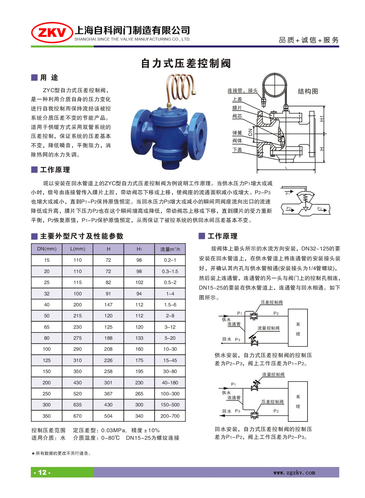 ZYC型自力式壓差控制閥,是一種利用介質(zhì)自身的壓力變化進(jìn)行自我控制而保持流經(jīng)該被控系統(tǒng)介質(zhì)壓差不變的節(jié)能產(chǎn)品。適用于供暖方式采用雙管系統(tǒng)的壓差控制,保證系統(tǒng)的壓差基本不變,降低噪音,平衡阻力,消除熱網(wǎng)的水力失調(diào)。